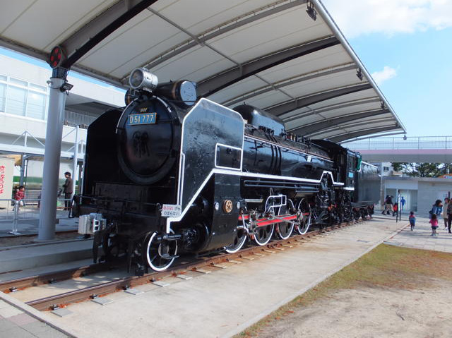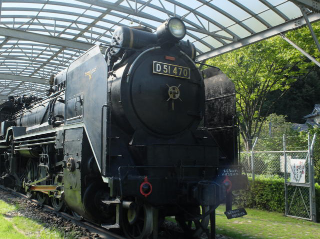 (長浜市)D51形793号蒸気機関車は、ダイナミックな雄姿から「デゴイチ」の愛称で広く親しまれ、1,115両も製造されました。このD51形793号は1942(昭和17)年11月18日に三菱重工業(株)で製造され、東北・東海道・中央・北陸の各線を、1970(昭和45)年まで27年余り走りました。その走行距離は1,784,000kmで、地球を約44周したことになります。1970(昭和45)年10月「消えゆく蒸気機関車をぜひ長浜で保存したい」という市民の声にこたえ、当時の国鉄金沢鉄道管理局から貸与されました。