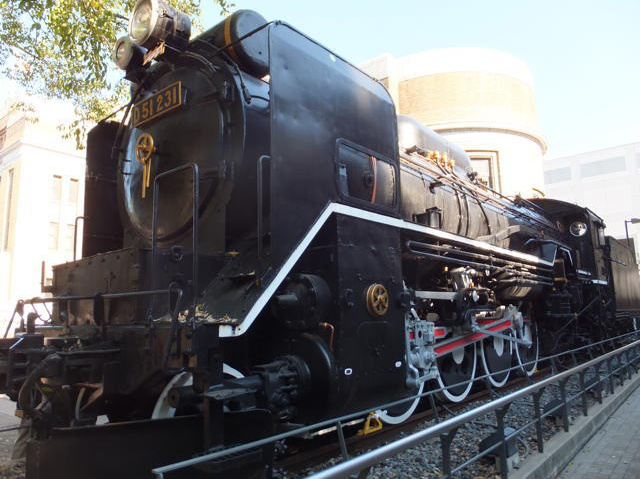 (台東区、上野公園)D51形蒸気機関車は、おもに貨物用として昭和11年より製造されてきましたが、その優れた性能から日本国有鉄道で当時最も多く使われ、デゴイチの愛称で人々に親しまれてきました。この231号は昭和14年7月に日本国有鉄道長野工場で製作されてから、東海道本線・山陰本線・その他で活躍し、昭和50年12月15日北海道追分機関区で休車するまで約216万km(地球を約54周)を走行しました。