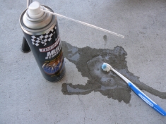 - まず、使い古しの歯ブラシとディグリーザー(油汚れ除去・洗浄剤)、そしてペットボトルに入れた水を用意します。(私の家には外水道がないので)