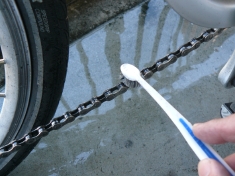 - 歯ブラシにディグリーザーを付けて、チェーンを洗浄します。