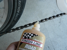 - チェーンに潤滑剤を塗布して、ウェスで馴染ませます。