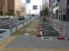 最近、歩道に取り付けられている「自転車道」。これは自転車しか走ることができません。逆に言うと、自転車はここしか走ってはいけません。つまり歩道も車道も通行禁止!