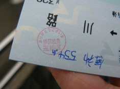 帰ってきた川路駅で車掌さんに「切符を記念にください」というと、車掌さんは手書きで「無効554m」と書いて、ハンコを押してくれました。554mって何?これまでで手書きで何かを書いてくれたのは初めて。ハンコの文字が「ありがとうございま」なのが少し笑えます。 |