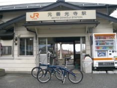 雨が降ってきたので、元善光寺の駅でサイクリングを中止することに。駅の前で自転車を折りたたんでいると、駅員さんがやってきて「これまで自転車の持ち込みは無料でしたか?昔はお金をいただいていたんだが・・」と聞かれました。「規則では無料だと思うんですが」と答えると納得してもらえました。改めて聞かれると不安になりますね。輪行袋が自作だし・・ |