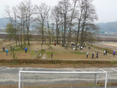 河川敷で、グランドゴルフ(マレットゴルフ)大会が開かれていました。比較的年配の人がプレーしていましたが、見ていると皆さんなかなかの腕前です。 |