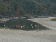天竜橋から天竜川をのぞくとサギが群れていました。木の上に群れているのはみますが、川で群れているのはあまりみません。 |