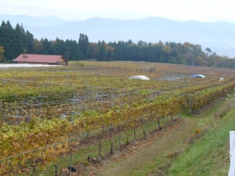 駅の下側に広がるブドウ畑。9〜10月にブドウ狩りができるそうです。 |