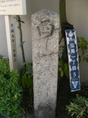 熱田神宮は、今の国道1号線と国道19号線の分岐になっています。これは昔からのことで、江戸時代は東海道と美濃街道の分岐点でした。写真はその分岐を示す道標で、4面に行き先が書かれています。正面は「西 江戸かいとう(街道) 北 なごやきそ(名古屋木曽)道」と書かれていました。 |