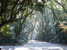 クスノキを中心にした境内の森に木漏れ日が入り、とても神聖な雰囲気でした。 |