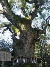 境内にあったクスノキ。看板には「弘法大師のお手植えとも言われ樹齢は千年以上」と。あまりのスケールの大きさにびっくり。 |