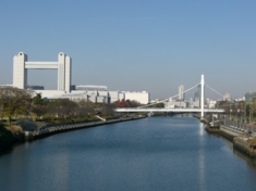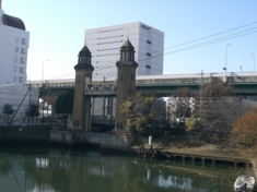 「松重閘門」という歴史的産業遺産です。昭和初期に堀川と並行してして作られた「中川運河」とバイパスするために船を通した門です。昭和51年まで現役だったそうです。 |
