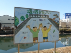 堀川は名古屋駅のすぐ近くを流れています。この付近はやはり川の色が黒く、ゴミも目立ちます。 |