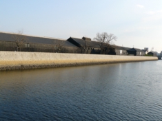 半田運河沿いには、酒や酢の醸造所が並びます。黒い板壁の建物が並び、伝統を感じる風景が見られます。 |