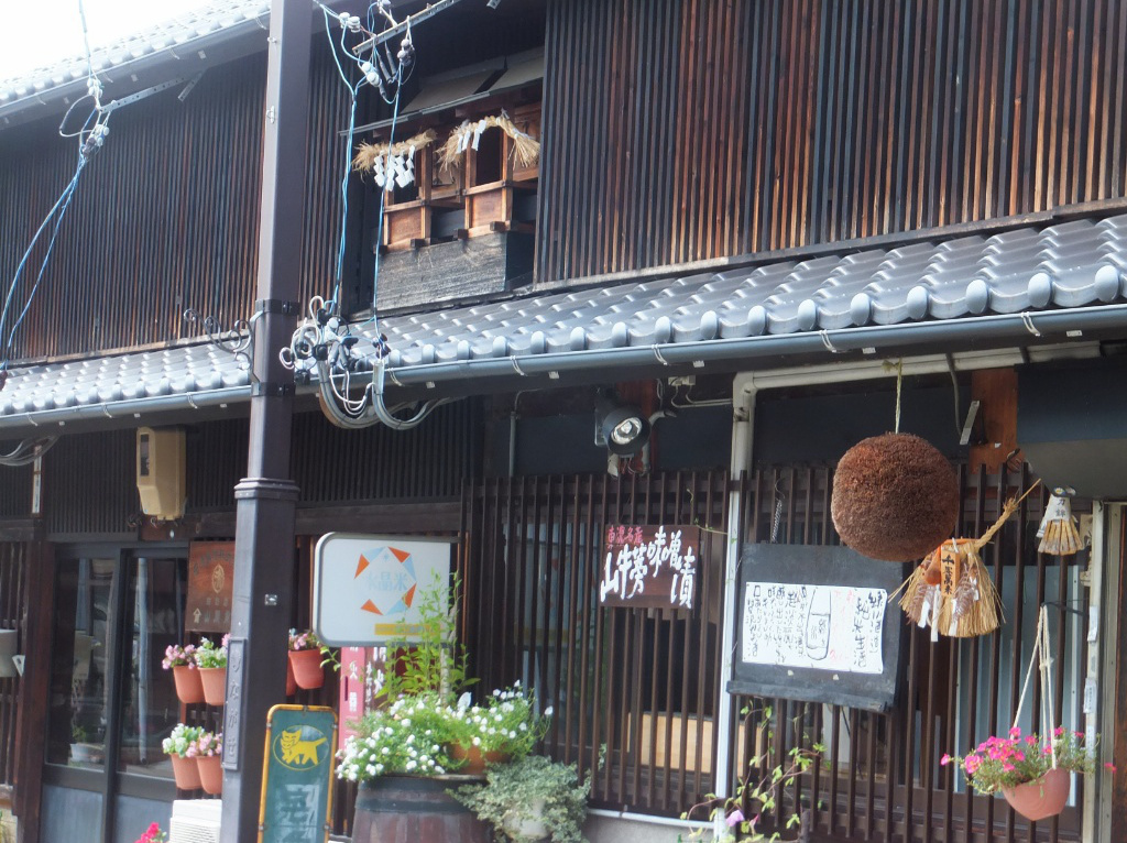 多治見市の長瀬商店街にある古い酒屋には、屋根神様があります。屋根神についてはこちらを参照ください。 |