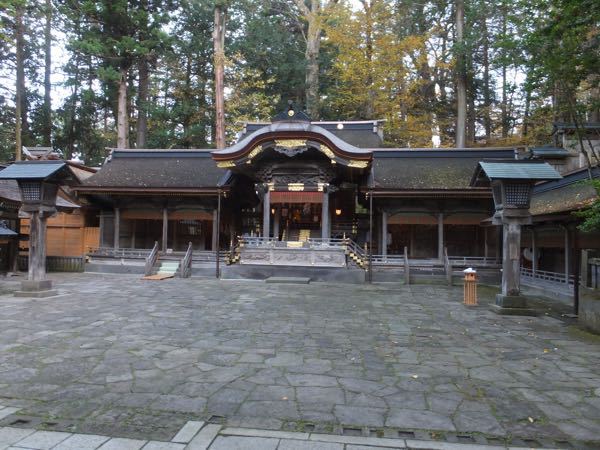 実は、2日目のポタリングは下社秋宮から。神楽殿の大注連縄が圧巻。重さ1トンの注連縄は、御柱祭毎に新しく作り替えられるそうです。 |