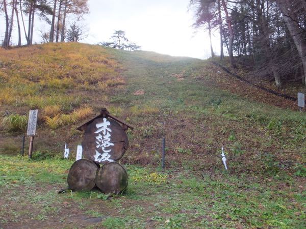 木落坂を上から覗いたら、下から見るよりすごく急に見えます。スキー場で言ったら上級コース。看板によると斜度は45度近いとのこと。 |