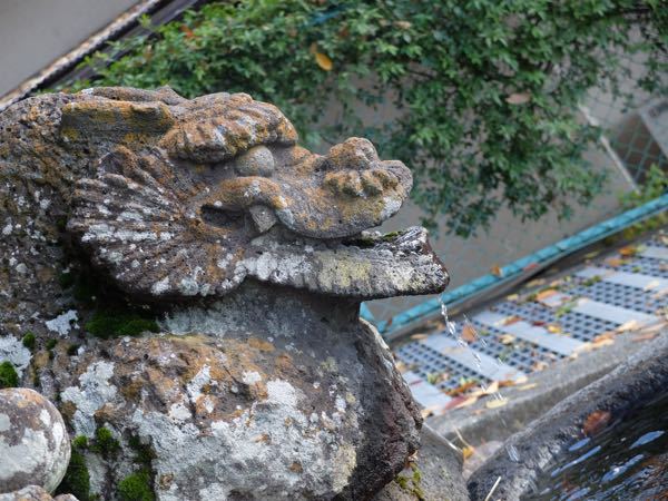 中山道沿いにポタリングしていると、小さな水場がありました。その水が出ている龍の石彫刻がとても格好良くて、目を引きました。江戸中期の作だそうです。 |