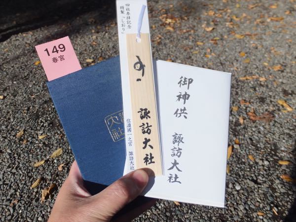 四社で御朱印をもらったら、記念に栞と御神供(きな粉入りの干菓子)を頂きました。 |