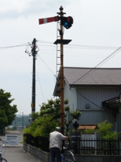 JR可児(かに)駅の入口に保管されている機械信号機。昭和61年に引退し、職員の方の努力によって移設したそうです。 |
