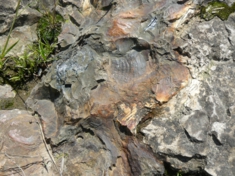 可児川で見つけた化石株。およそ2000万年前の大木(メタセコイヤ)の株の化石だそうです。河川工事などで化石株も減って、貴重な文化財になっているようです。 |