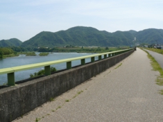 木曽川の堤防は、眺めの良い道になっています。大部分は車止めがあって、サイクリングに最適です。 |