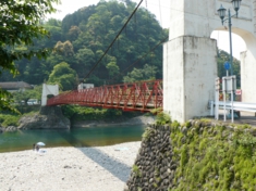 まずは美濃市でポタリング。長良川にかかる「美濃橋」。大正5年(1916)に架けられた現存する最古の近代つり橋。入口の看板には「大変老朽化して危険です」と書かれていましたが、自転車で渡っても怖くありませんでした。 |