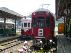 1999年に廃線になった名古屋鉄道美濃町線の終着駅、「美濃駅」が保存されていました。中には、古い車両が3台残されていました。 |