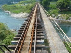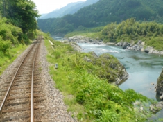 左から長良川、中央が長良川鉄道、右が自転車で走った県道です。車の少ない県道は、ずっと長良川に沿って続いていて、快適に走ることができました。 |
