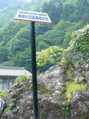 道端で見つけた看板「長良川氾濫最高水位、平成16年10月20日台風23号」 清流にも別の違った一面が・・・ |