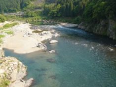 長良川は、曲がりくねったり、ゆるやかだったり、早瀬があったりします。自然の川の姿を残しています。 |