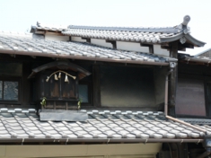 美濃市に残る古い町並み。屋根の上を見ると、隣の家との間に仕切りのように屋根が飛び出しています。これは「うだつ」といって火事が広がらないようにする江戸時代の工夫だそうです。繁盛している店には立派な「うだつ」があったので、逆に「うだつがあがらない」という言葉ができたそうです。うさぎの飾りが付いているものも・・ |