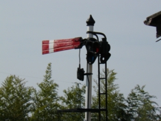 岩村駅に再現されている「腕木式信号機」です。平成16年まで活躍していたそうです。 |
