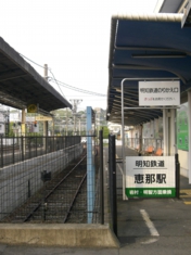 明智駅に到着。鉄道名は「明知」ですが、駅名は「明智」。どうして漢字が違うのかな。 |