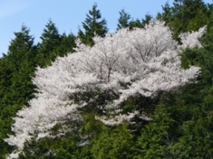 新緑の中の桜。5月に入ろうとしているのに、まだこんなにキレイに咲いています。 |