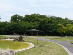 「二子山古墳」と呼ばれる前方後円墳。継体天皇と縁のある尾張の豪族の墓とのこと。この周辺にはいくつかの古墳が集まって作られています。 |