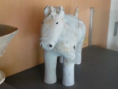 古墳公園内の「ハニワの館」に出土品が展示されています。この馬の埴輪、ちょっとかわいい。 |