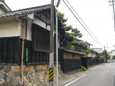 古墳を過ぎると県道を離れ、街道らしい細い道になります。新しい家も多いですが、このような旧家も見られます。 |