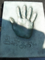 八丁蔵通りはNHKの朝ドラの舞台になりました。そのヒロインの宮崎あおいさんの手形がありました。市内には他の主な出演者の手形が各所にあります。 |