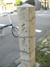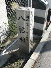 八丁味噌の蔵は岡崎城から西に八丁(約870メートル)のところにあったことに由来しています。地名は「八帖」と書くようです。これから「二十七曲り」を辿るわけですが、この道標を探しながらのポタリングです。 |