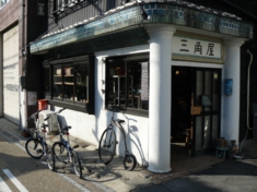 オリベストリートにある骨董屋さん「三角屋」外に置いてある超レトロな自転車が魅力的です。建物自体も大正時代のものだそうです。 |