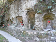 「穴弘法」岸壁に掘られた無数の穴に石仏が置かれています。周囲は厳かな雰囲気をかもし出しています。(2009.2.11追加) |