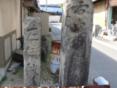 ガードレールに隠れて、見逃してしまいそうな昔の標識「左、伊勢道、右、中仙道」。昔の人は、この道を通って伊勢にお参りしたんですね。 |