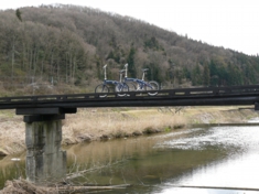 こんな草の生えた橋もあります。車の轍があるということは、車が通っているということ? |