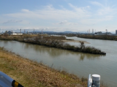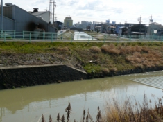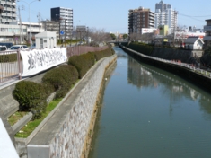 名古屋高速の黒川ICが見えてきた頃から、堀川は護岸のきっちりした都市河川に変貌していきます。 |