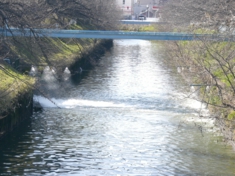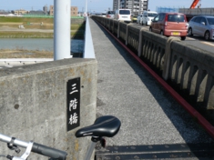 矢田川にかかる「三階橋」一階は矢田川の下を流れる堀川、二回は矢田川、そしてこの橋が三階という意味だそうです。 |