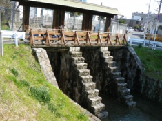 矢田川に出会ったところで、堀川は一旦消えて、また対岸で現れます。つまり堀川は矢田川の下をトンネルで流れているということ。これは江戸時代からそうだったというから驚きです。また舟が通った明治時代には、舟ごとトンネルを通ったというからさらに驚きです。 |