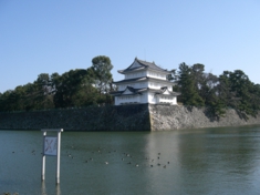 外堀と西北隅櫓(清洲櫓)。カモがたくさん泳いでいました。 |