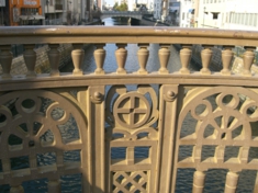 納屋橋の欄干の中央に、堀川を作った福島正則の家紋がデザインされています。 |