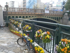 堀川七橋の一つ「納屋橋」大正2年(1913)に銅製のアーチ橋に改築され、その後も改築されていますが、欄干は銅製アーチ時代のものが残されています。 |