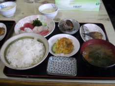 まずは腹ごしらえ。豊浜魚港の中にある「市場食堂」で「おまかせ定食」を注文しました。刺身、にし貝、干物、かき揚げ、シャコ汁が付いて1000円は安いです。 |